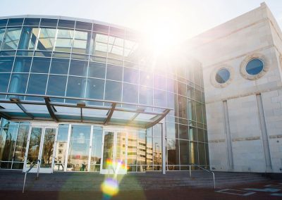 The entire facility is available for full-day conferences with amenities that keep attendees engaged on site. Host a welcome breakfast in the Daniels Great Hall, panel discussions in the Malone Theater, and break-out meetings in our multiple conference rooms. Then return to the Great Hall for lunch and a keynote speaker, using the video tower to display logos or dynamic presentations. When the work is done, guests can relax with cocktails and appetizers while networking outside in our beautiful Drendel Gardens.